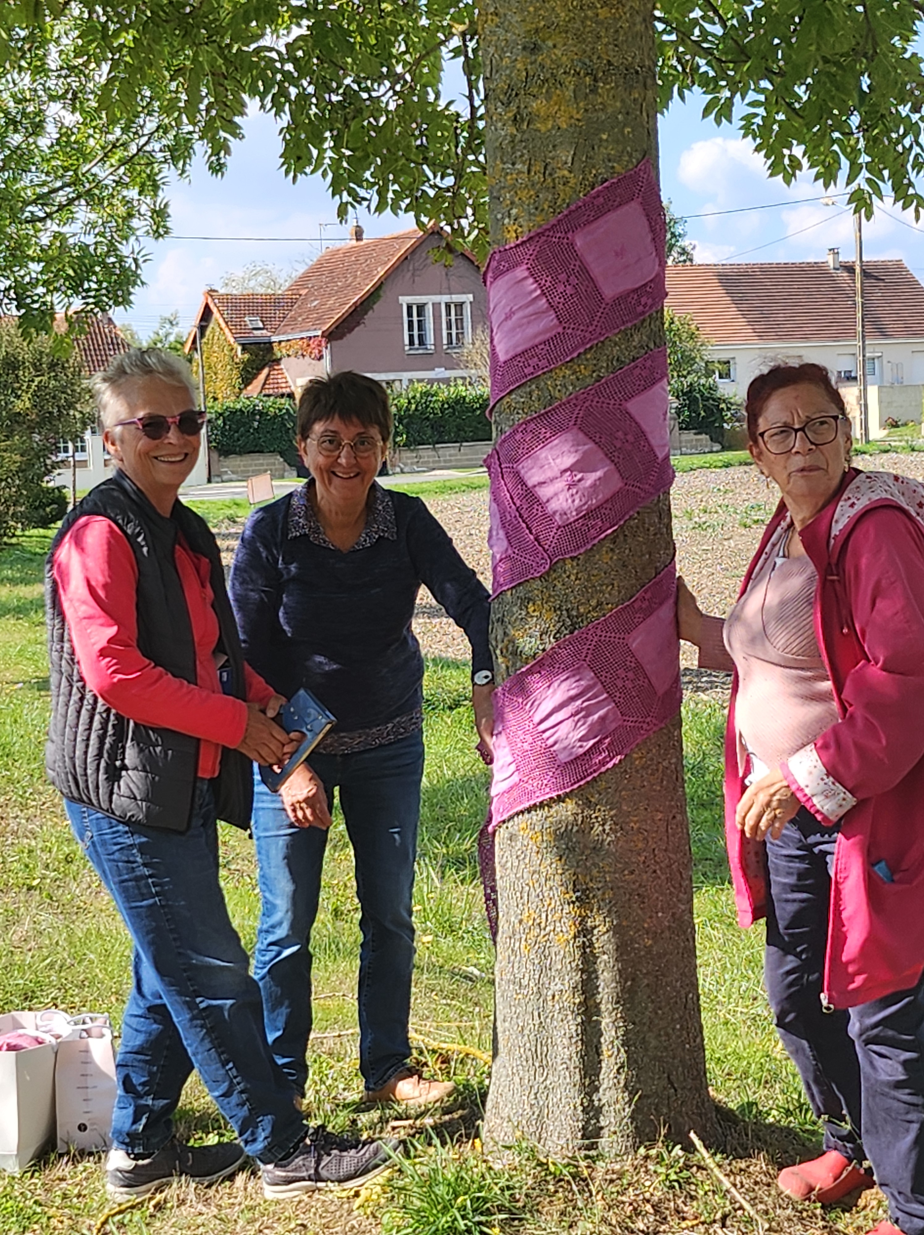 Dans le cadre d'Octobre rose, nos résidentes ont mis tout leur cœur et leur talent au profit du collectif décoration de Marcilly sur Vienne afin d'orner les arbres de rose. Depuis plusieurs mois, nos aiguilles s'activent avec passion pour tricoter des bandes roses. A travers chaque maille, c'est un message d'espoir, de soutien et de tendresse qui a été transmis. Le collectif de Marcilly sur Vienne nous a invité à réaliser l'installation des créations. En retour, ils nous ont prêté une de leurs œuvres en bois que nous avons exposée devant le Pôle Seniors du Centre Hospitalier de Sainte-Maure de Touraine.