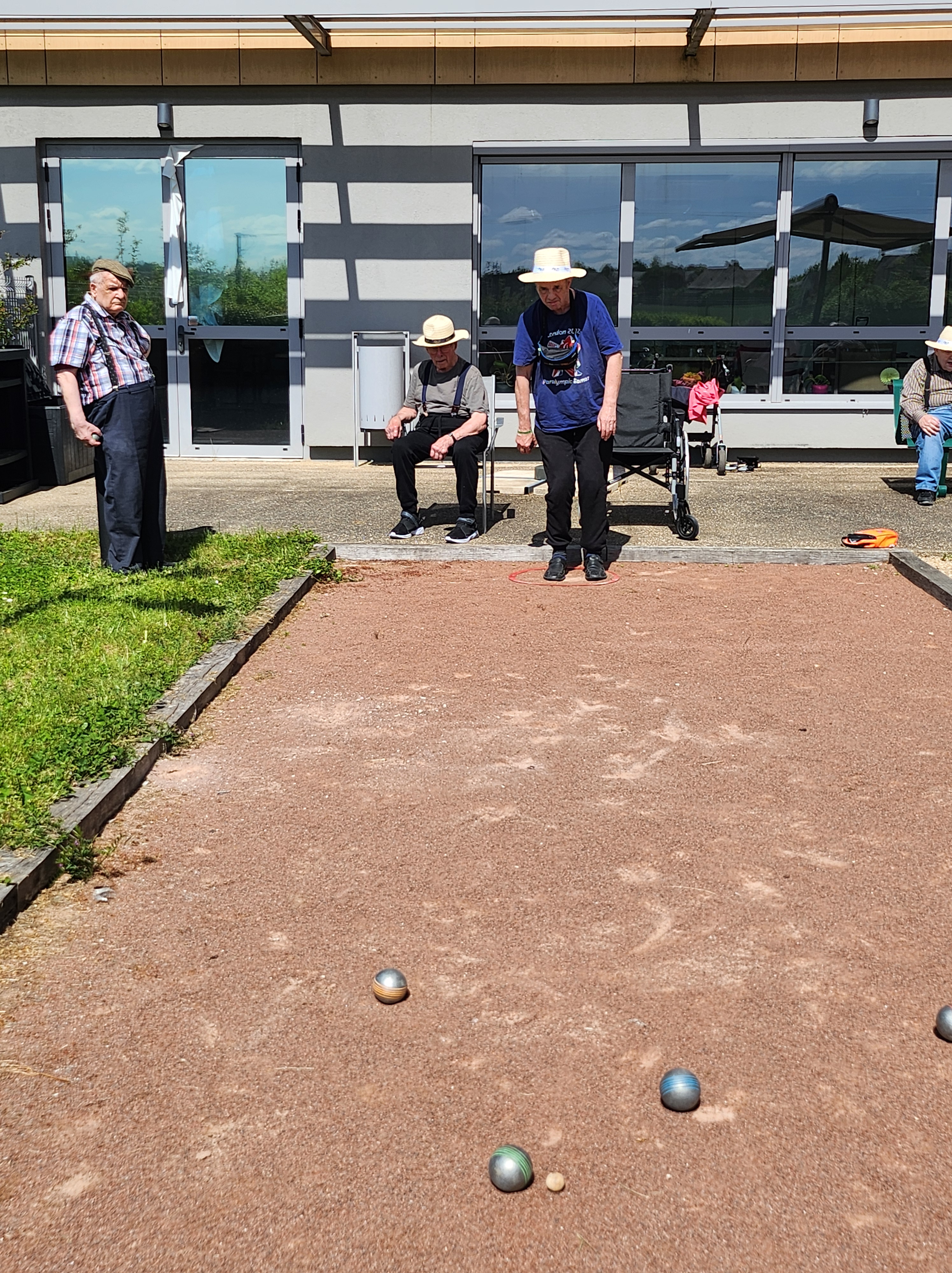 C’est sous le soleil printanier que les résidents se sont réunis au boulodrome pour une partie de pétanque. Certains observaient avec attention tandis que d’autres lançaient les boules avec enthousiasme. Un bel après-midi dans une ambiance chaleureuse.