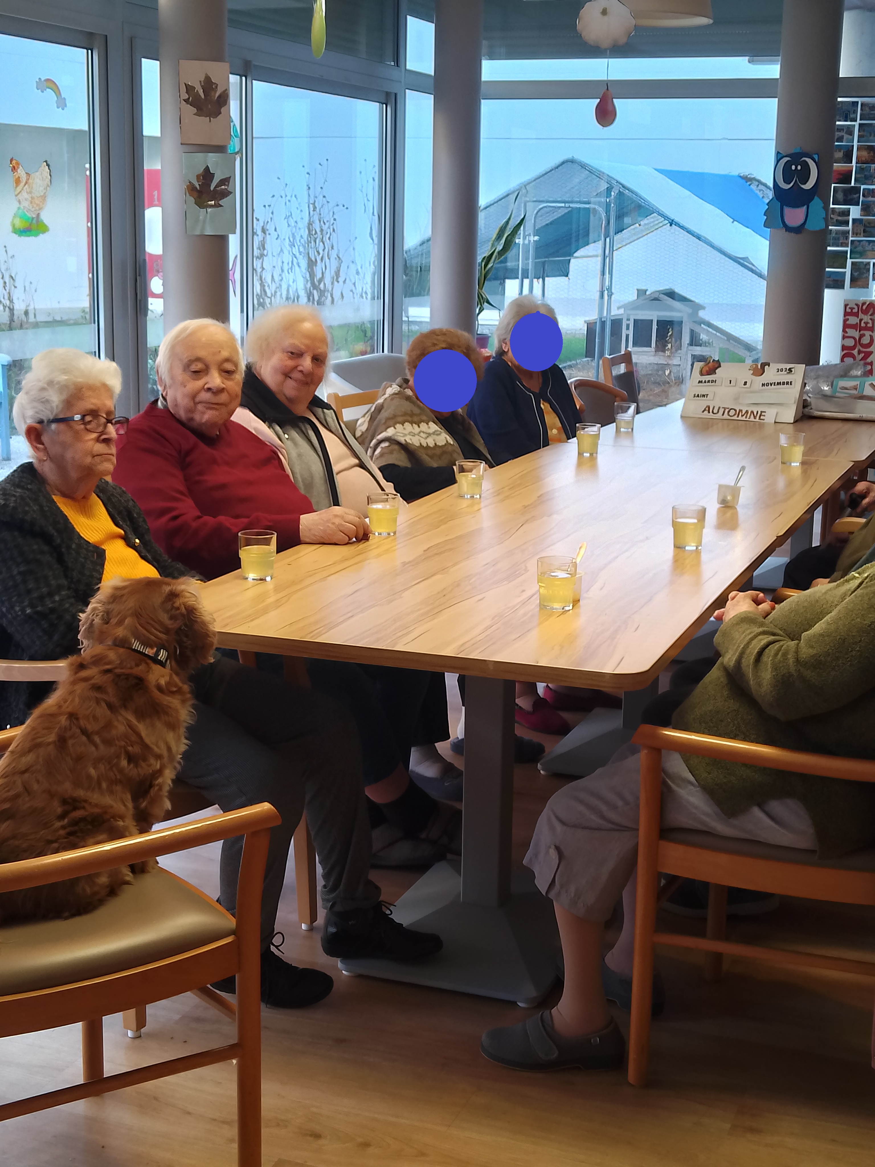 Ces dernières semaines, les petites mains des résidents ont bien travaillé avec la réalisation de délicieux gâteaux aux pommes 🍎 et les premières décorations de Noël. La Dame de saison commence à revêtir sa tenue d’hiver grâce aux boules découpées par les résidents 🎄✂️. Nous avons eu de jolies visites : Mia, la petite chienne, toujours comme chez elle pour le bonheur de tous 🐶et les enfants de la crèche de Sainte-Maure-de-Touraine, venus partager une matinée avec nous : jeux de ballon et chansons 🎶🎈 Nous remercions chaleureusement la famille Rolland qui nous a apporté de la paille, du foin et des grains pour nos poulettes ! 🐔 L’équipe du PASA